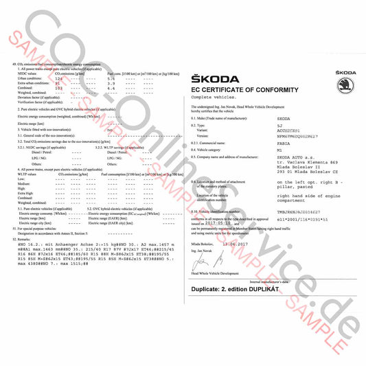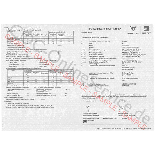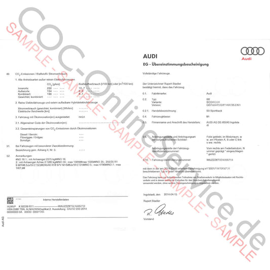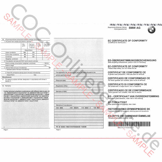 Documents COC 100 % originaux - directement du constructeur automobile.
