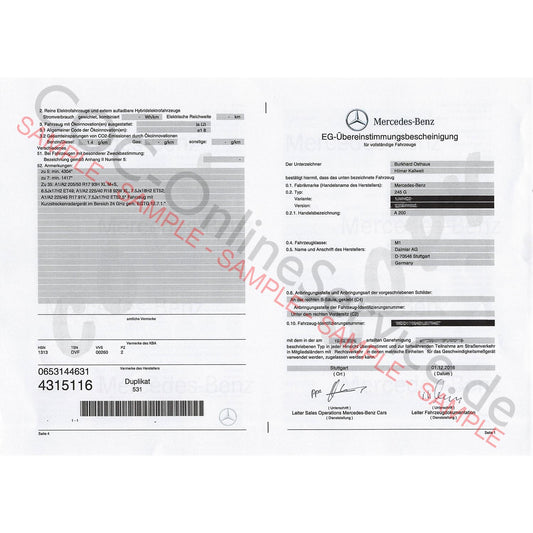 Papiers COC pour Mercedes-Benz (Certificat de Conformité)
