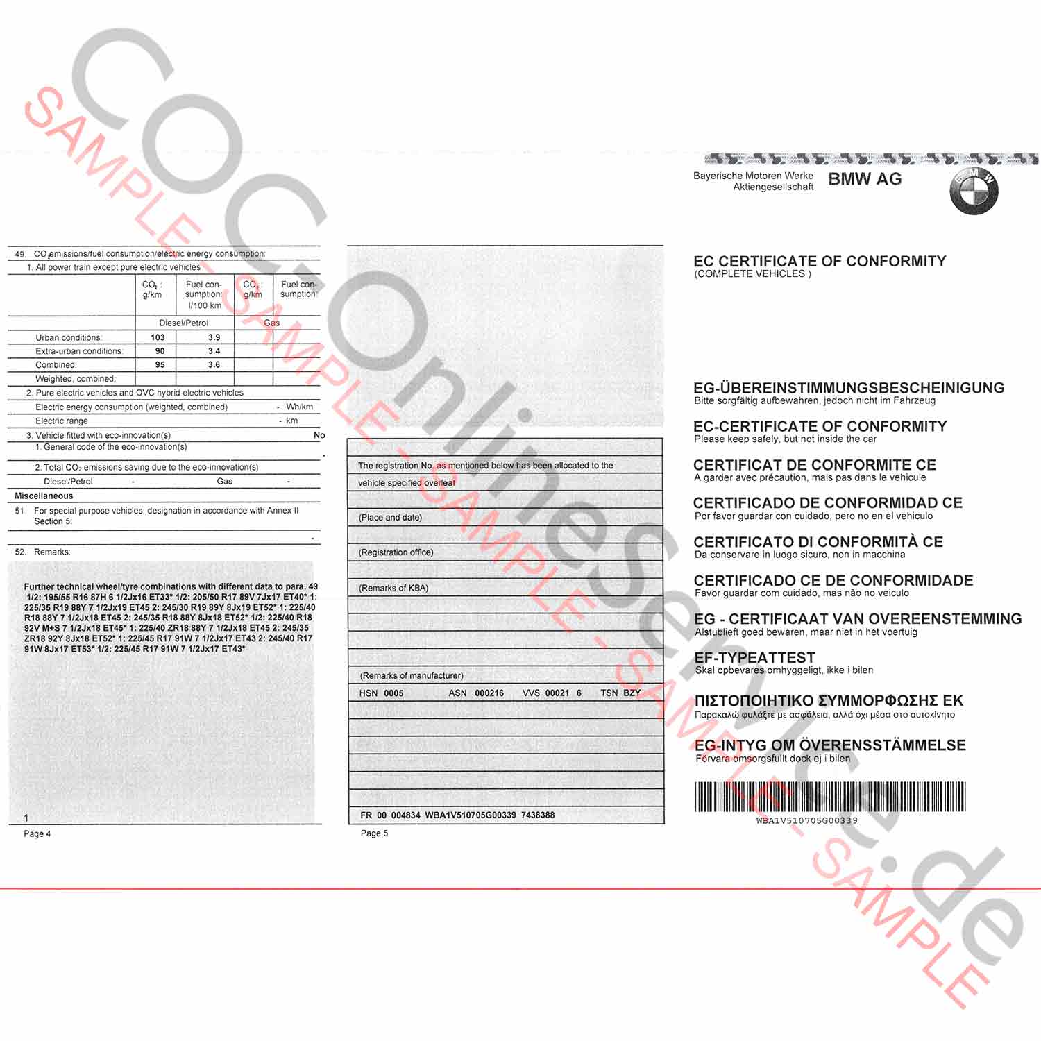 Si la entrega de un COC para su número de bastidor (VIN) no es posible, por ejemplo porque el vehículo es demasiado antiguo o no se fabricó para el mercado europeo, cancelaremos el pedido inmediatamente y le reembolsaremos el precio de compra íntegro.