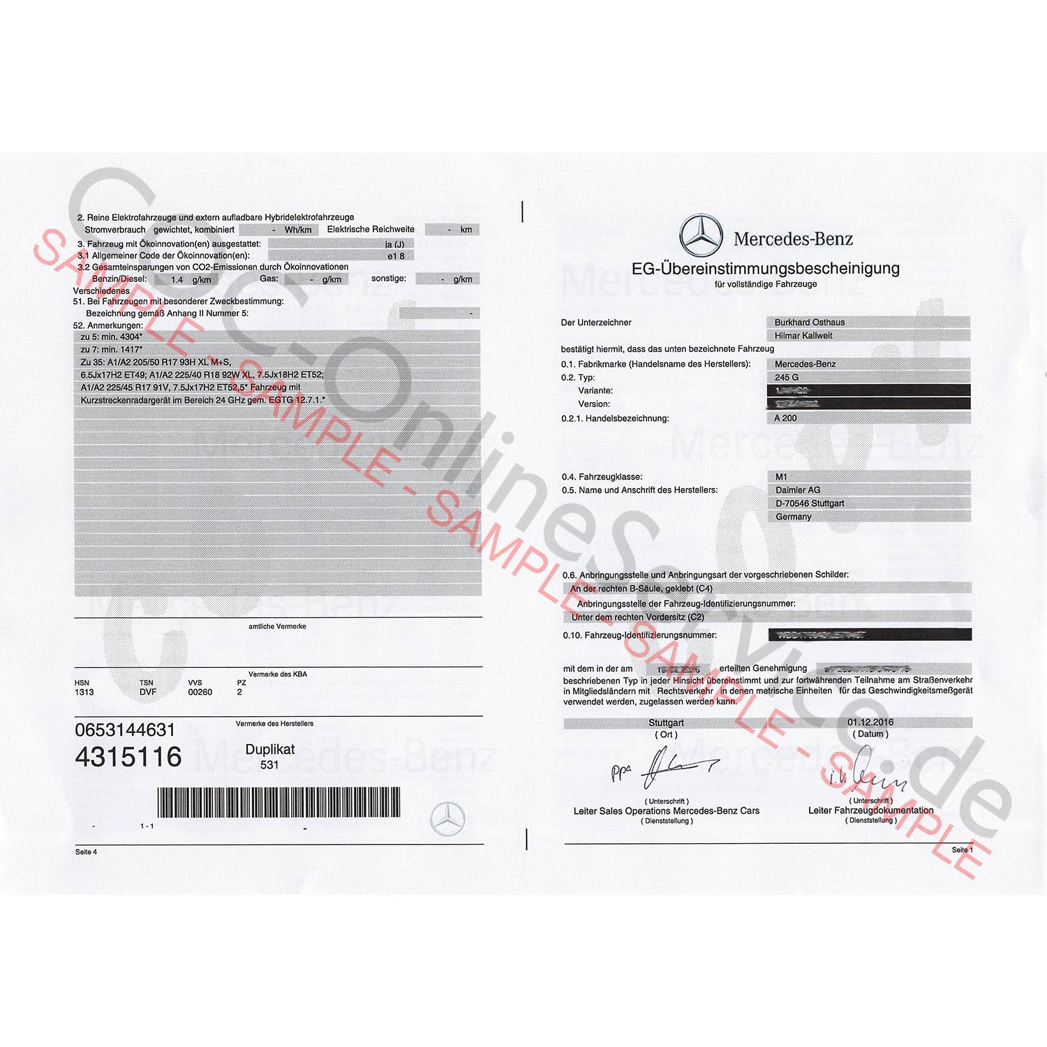 Carte COC per Mercedes-Benz (Certificato di Conformità)