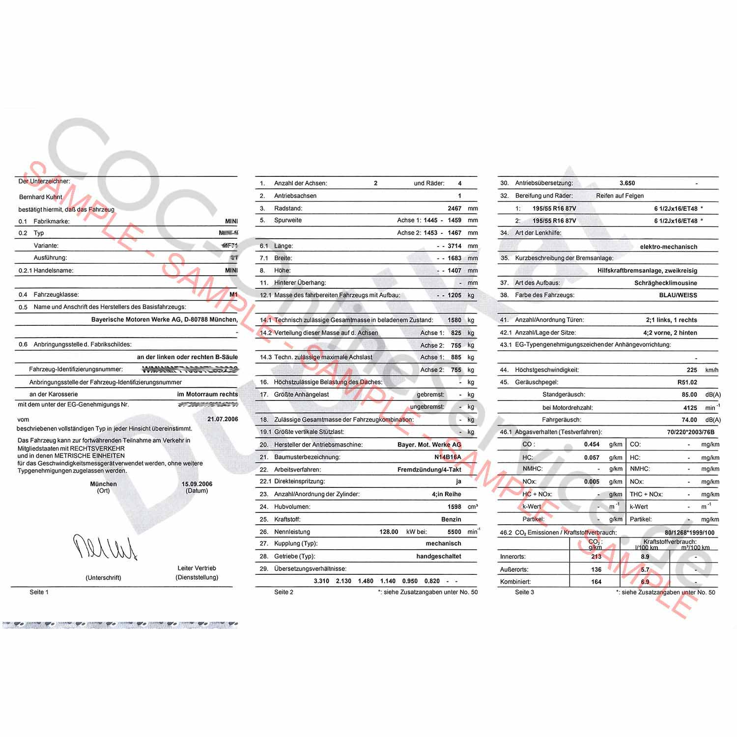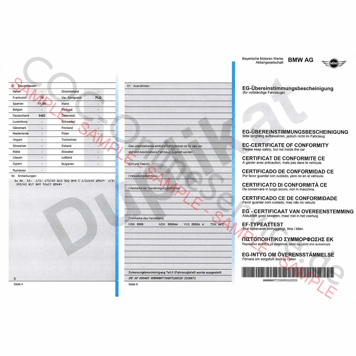 Se non è possibile fornire un COC per il tuo VIN (numero di identificazione del veicolo), ad esempio perché il veicolo è troppo vecchio o non è stato costruito per il mercato europeo, annulleremo immediatamente l'ordine e rimborseremo l'intero importo.
