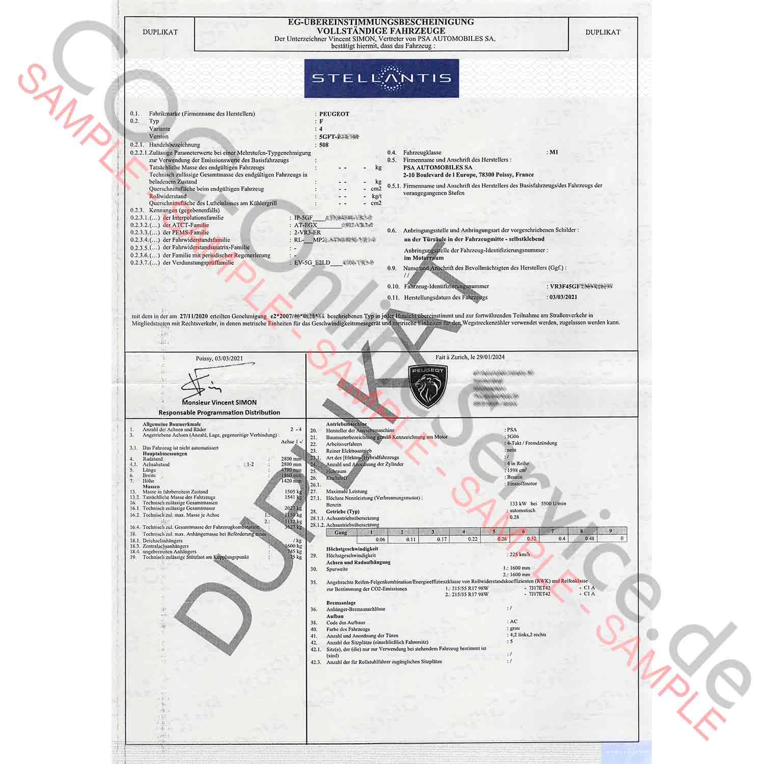 If the delivery of a COC for your chassis number (VIN) is not possible, for example because the vehicle is too old or was not built for the European market, we will cancel the order immediately and refund the full purchase price.