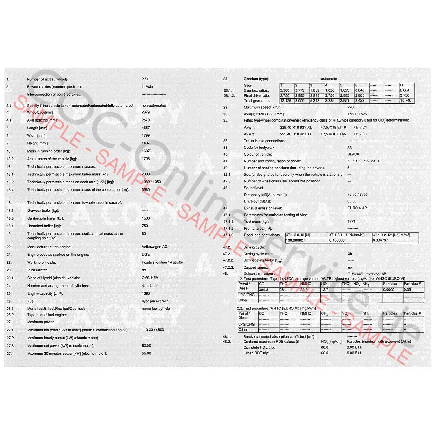 Papéis COC para SEAT (Certificado de Conformidade)